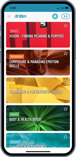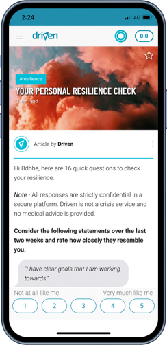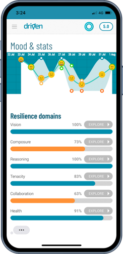 The Driven Resilience App uses a unique virtual coaching approach, becoming your personal resilience expert that’s always on.